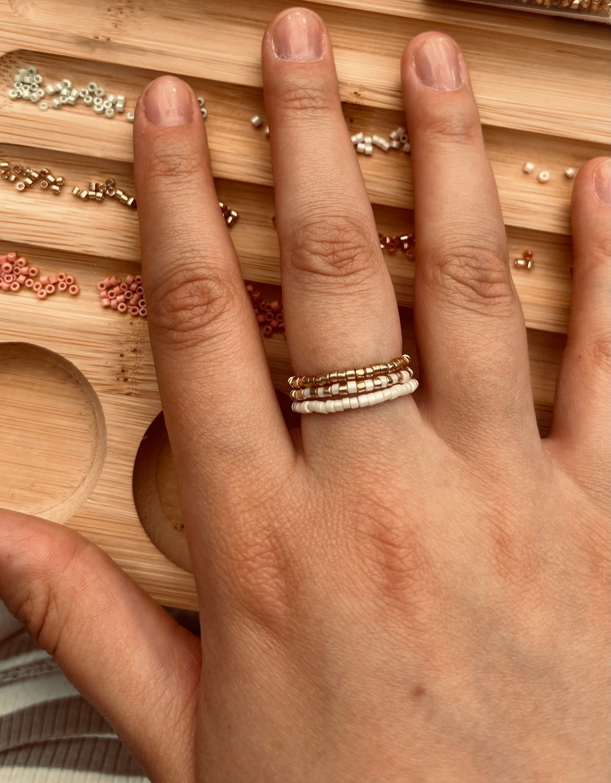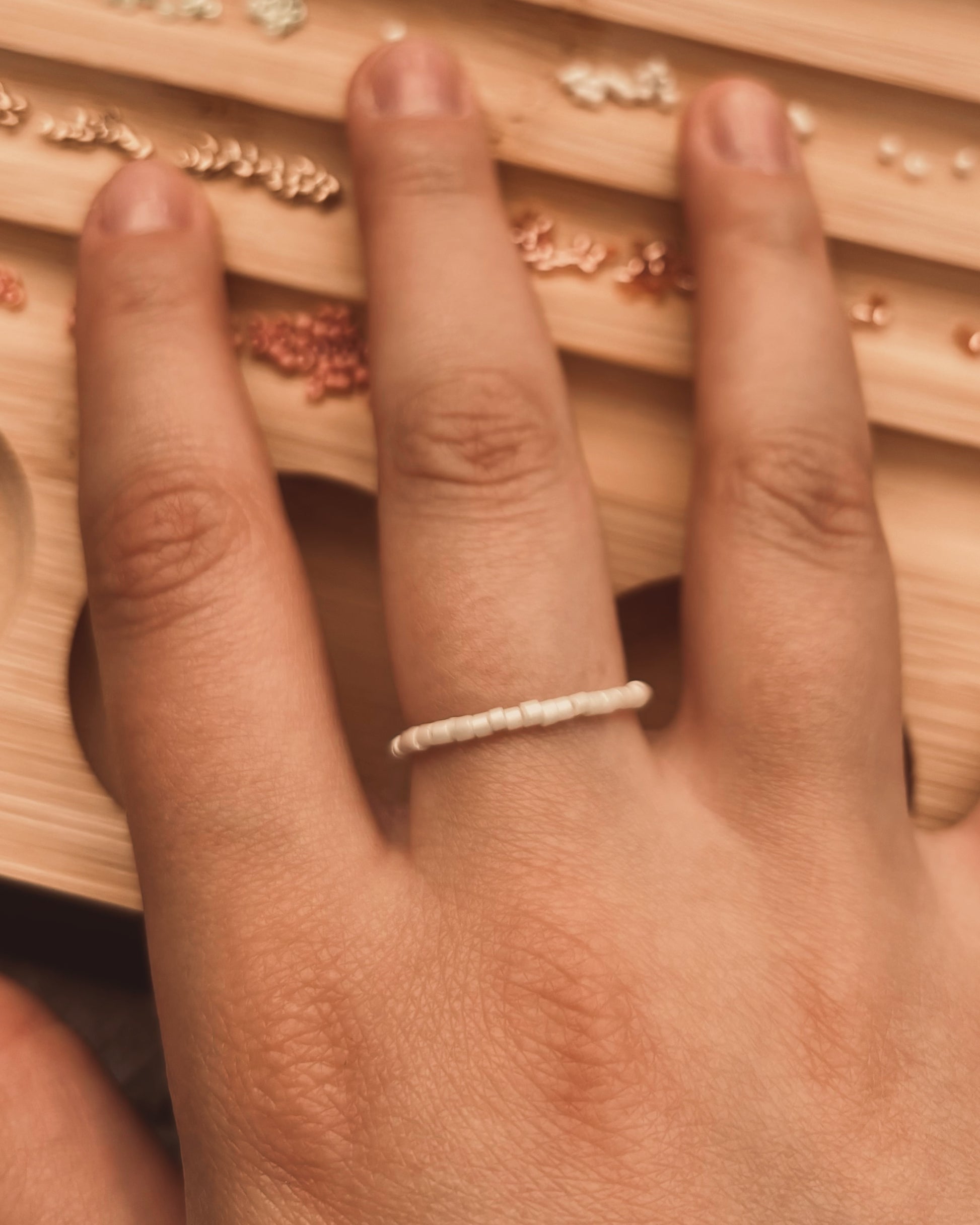 Beautifully simple and elegant, the Makana ring is a hand beaded ring.